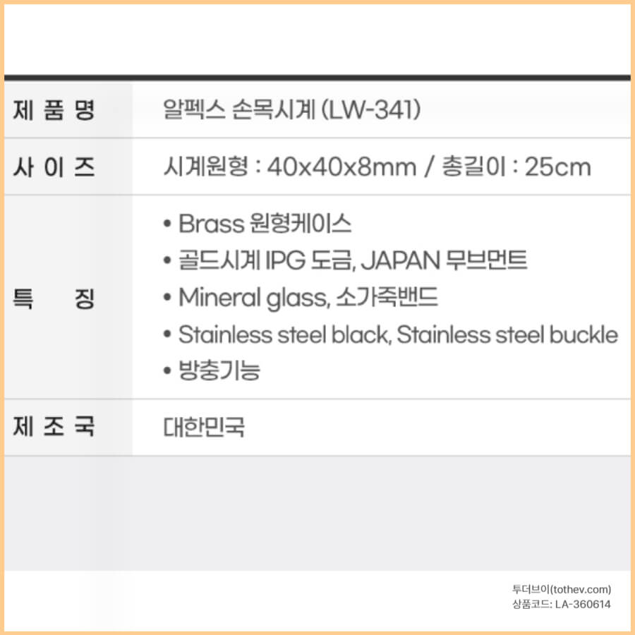알펙스손목시계 제품 정보(LW-342 기준)