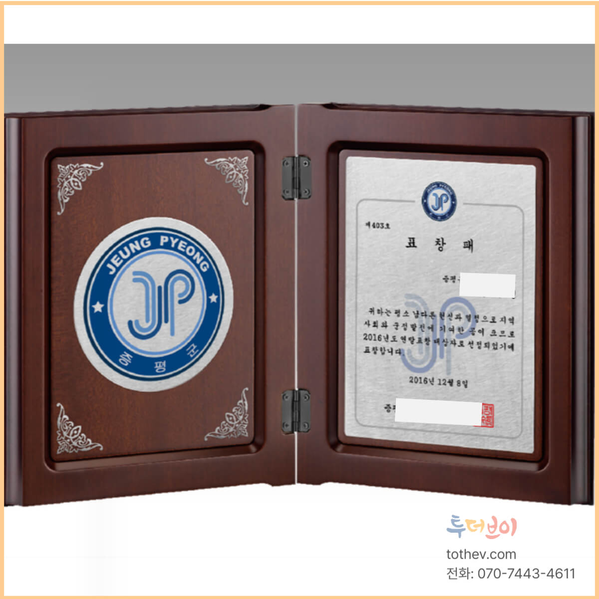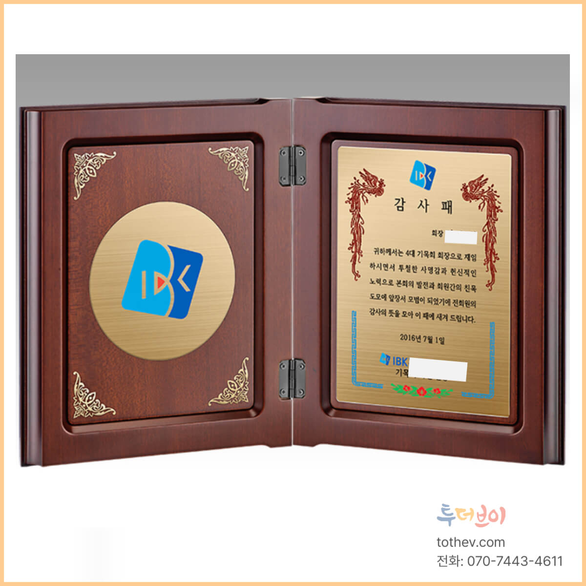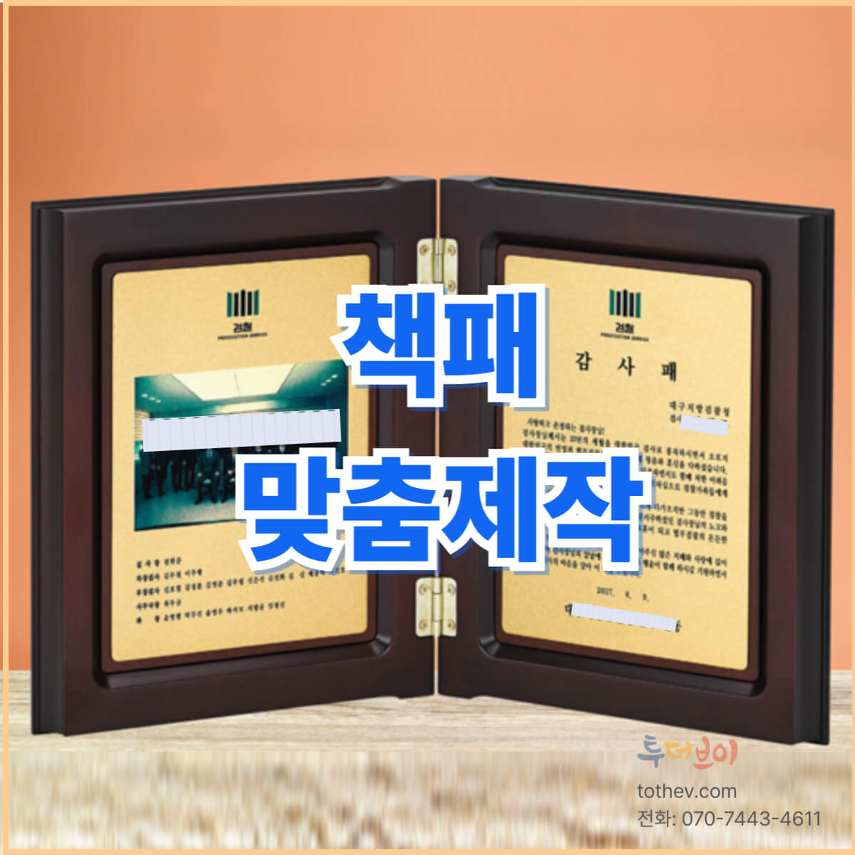 기업·단체 기념품 전문 투더브이(tothev.com)가 제안하는 책패(양면 상패) 제작 가이드입니다. 감사패, 공로패, 재직기념패, 이글패 등 여러 행사에서 품격 있게 사용되는 고급 맞춤 상패로 소중한 순간을 오래 남겨보세요.