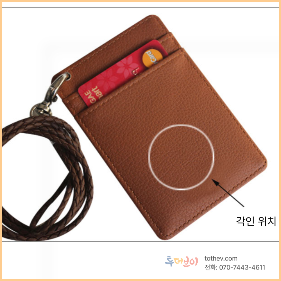 브라운 가죽 목걸이형카드지갑 로고 각인 맞춤 제작 예시