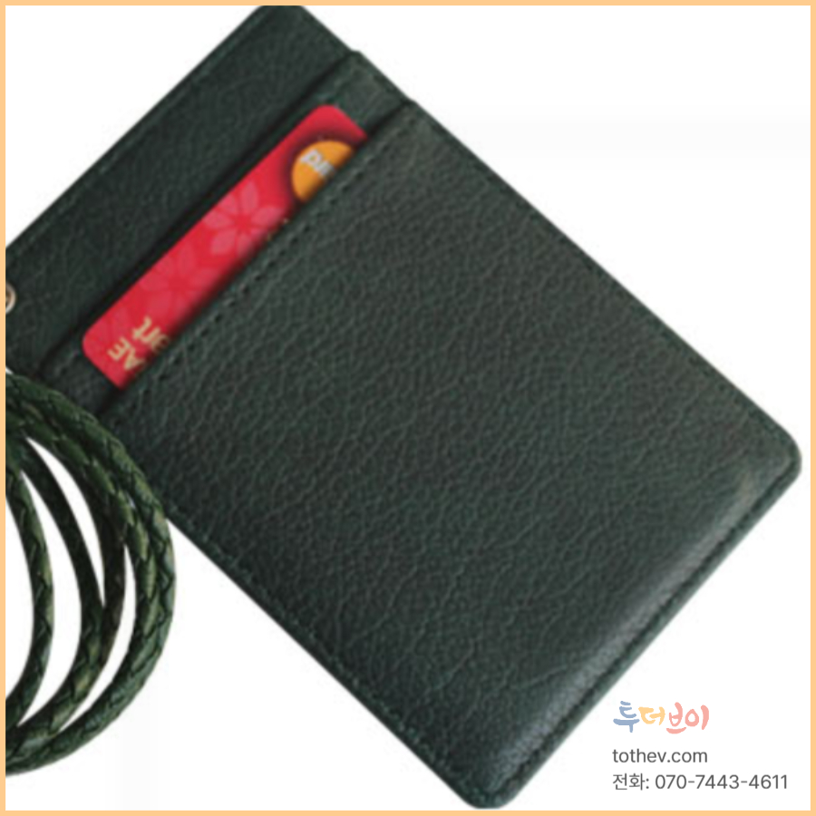 딥그린 컬러의 천연가죽 목걸이형카드지갑