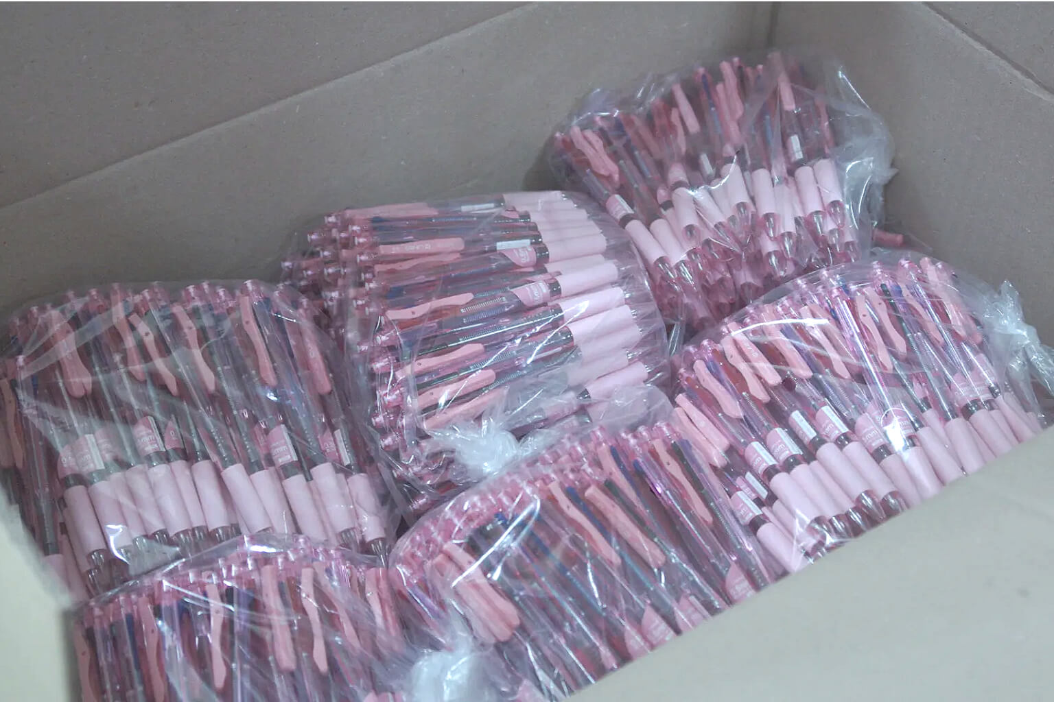 저가 볼펜 벌크포장 대량 입고 상태