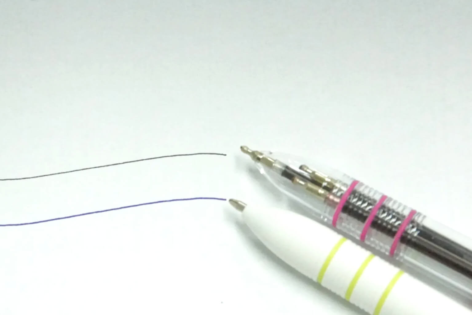 볼펜 심과 필기감 라인 비교 예시