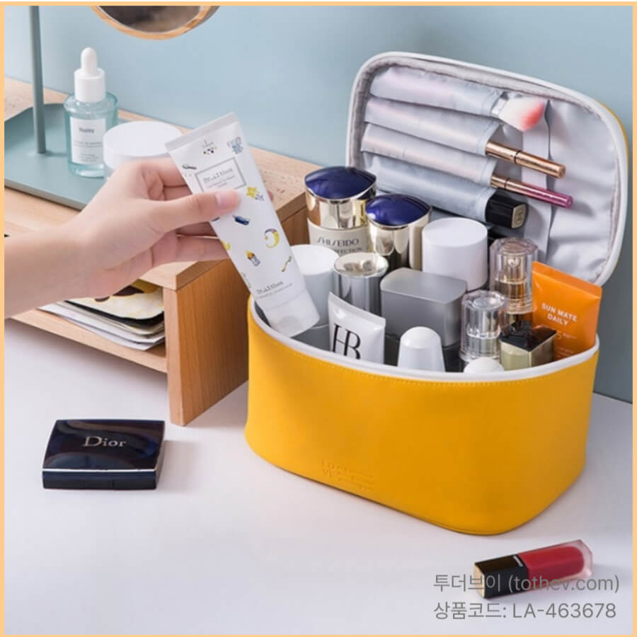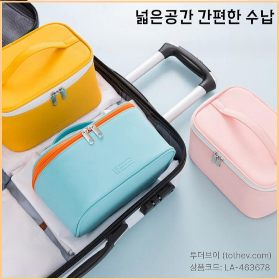 대용량화장품파우치는 여행용 파우치로도 활용도가 높습니다. 캐리어 안에 쏙 들어가는 직사각형 구조라 짐을 정리하기 편하고, 방수 기능 덕분에 샤워 후 바로 넣어도 부담이 적습니다. 샴푸, 트리트먼트, 바디워시, 렌즈 용품까지 담을 수 있어 1~2박 여행뿐 아니라 장기 출장에도 유용합니다.