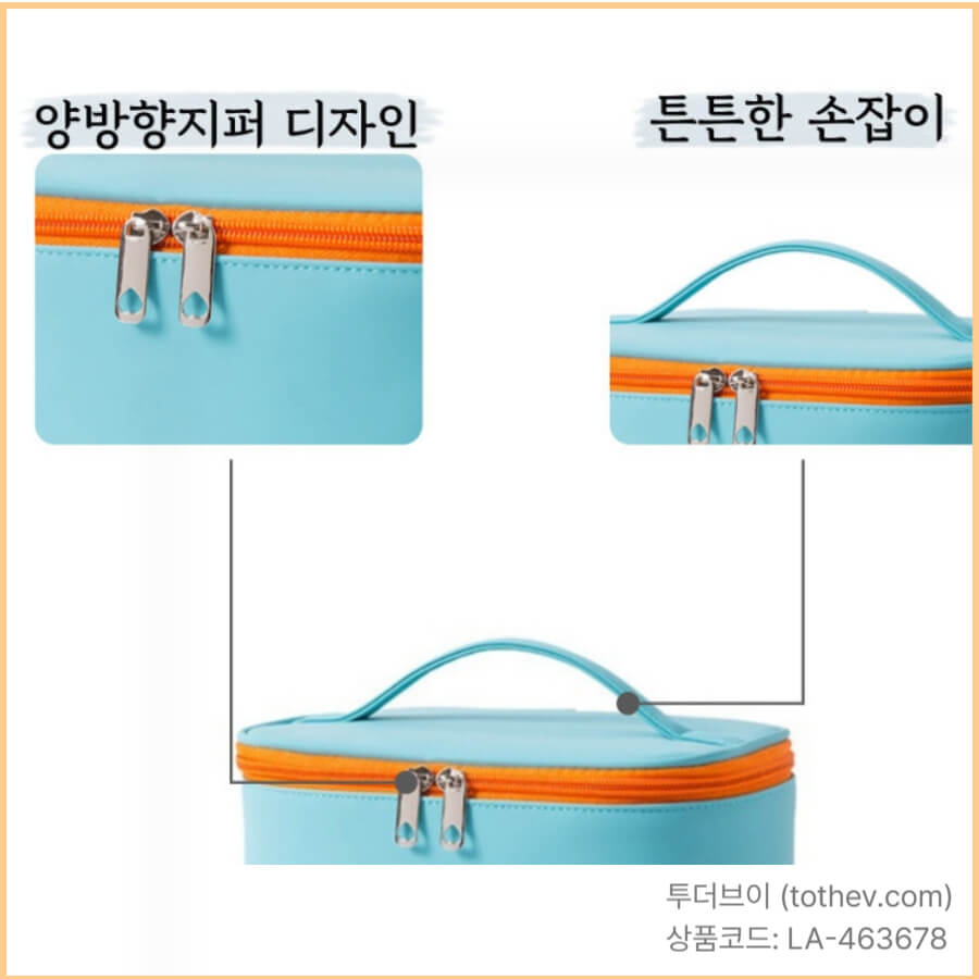 고급 판촉물일수록 디테일이 중요합니다. 이 대용량화장품파우치는 양방향 지퍼 디자인으로 어느 방향에서든 열고 닫기 편리하고, 지퍼 손잡이도 튼튼하게 마감되어 있습니다. 상단 손잡이는 무게감이 있는 화장품을 넣어도 손에 무리가 가지 않도록 부드럽게 설계되었습니다. 이런 작은 차이가 화장품파우치판촉물을 받는 고객의 체감 가치를 크게 높여 줍니다.