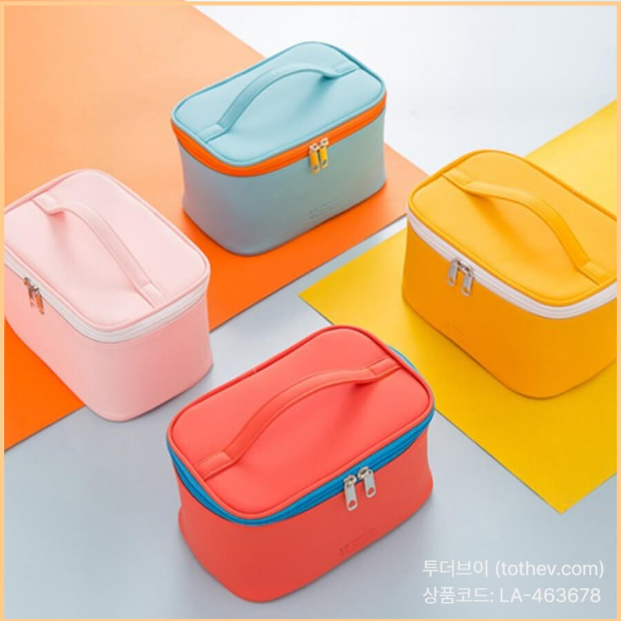 핑크, 옐로우, 오렌지, 민트, 블루 다섯 가지 컬러로 구성된 이 화장품파우치판촉물은 행사 콘셉트와 타깃에 따라 선택의 폭이 넓습니다. 산부인과나 여성 전문 클리닉은 부드러운 핑크와 민트를, 유아·어린이 대상 행사는 옐로우와 오렌지를, 기업 연수나 대학 행사에서는 블루 컬러로 안정감 있는 이미지를 줄 수 있습니다. 한 행사에서 컬러를 랜덤으로 섞어 제공하면 현장에서 사진 찍기 좋은 연출 효과도 기대할 수 있습니다.