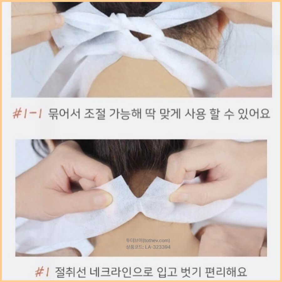 일회용앞치마라고 해서 착용감까지 포기할 필요는 없습니다. 절취선 네크라인 구조로 되어 있어 머리 위로 쉽게 착용하고 벗을 수 있어 바쁜 영업시간에도 빠르게 교체할 수 있습니다.