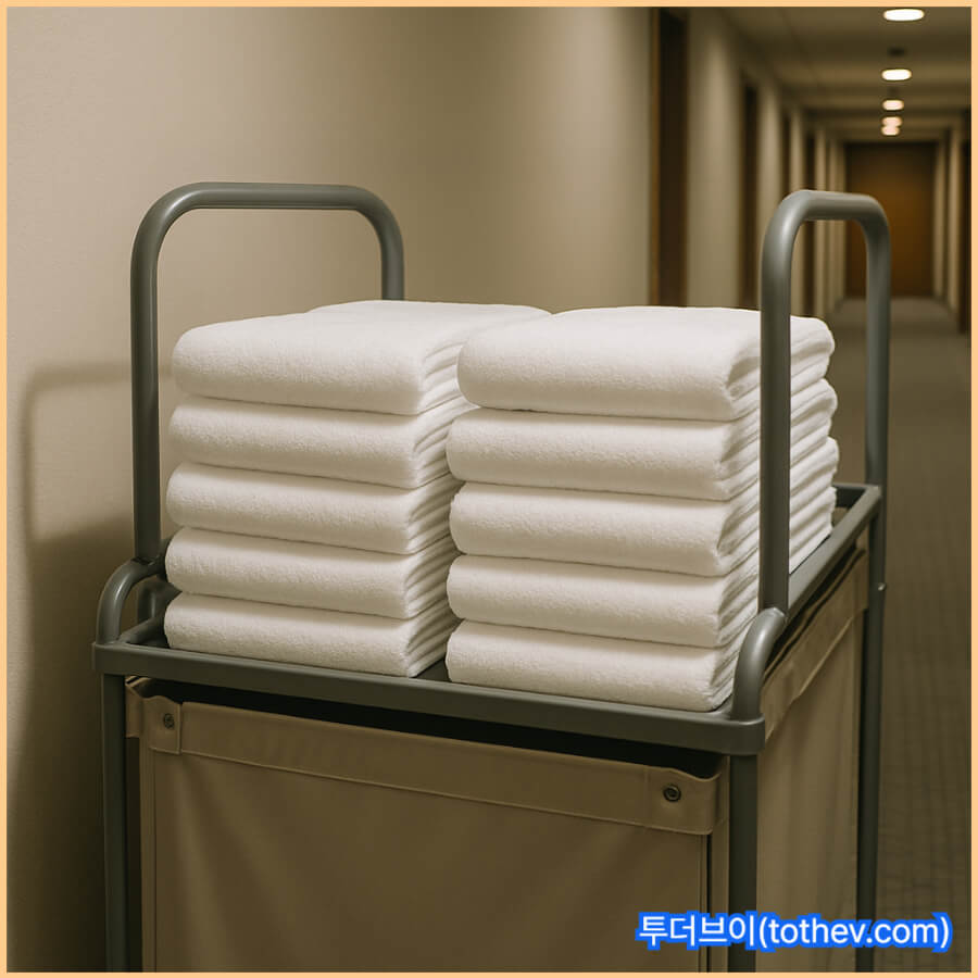 호텔수건은 말 그대로 사용 후 다음 상태를 고민하지 않아도 된다. 이 편의성이 “호텔수건은 좋다”는 인식을 강화한다. 집에서는 수건이 젖은 뒤 어디에 두고, 얼마나 말리고, 냄새가 나지 않게 관리할지까지 신경을 써야 한다. 호텔수건은 그 부담이 제거되며, 사용 경험이 ‘편안함’으로 기억된다.