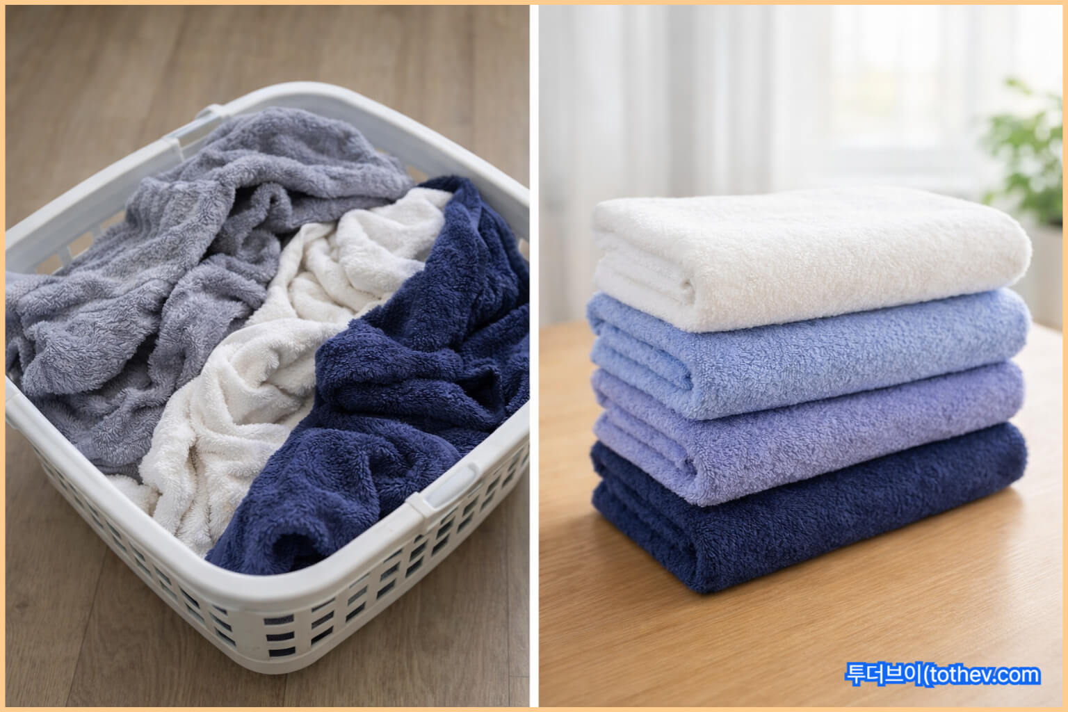 호텔수건고르는법 정리감 차이, 세탁 후 형태 비교