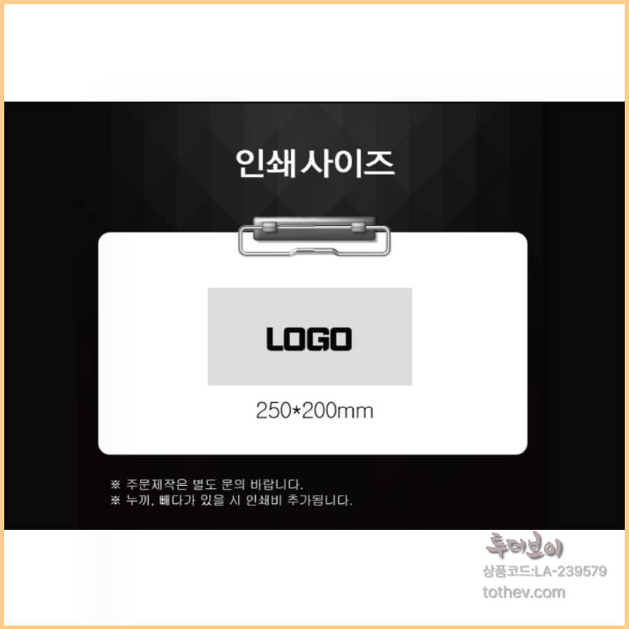 250×200mm 기본 인쇄 사이즈로 깔끔한 로고 연출