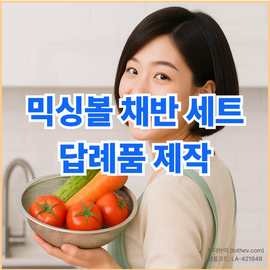 제품만 전달하는 것보다, 함께 동봉되는 한 장의 안내지가 훨씬 큰 인상을 남깁니다. 쌀 씻기, 채소 세척, 면 삶기, 샐러드 준비 등 믹싱볼채반세트 활용 예시를 일러스트와 함께 간단히 안내하면 받는 사람이 바로 사용해 보고 싶어집니다.