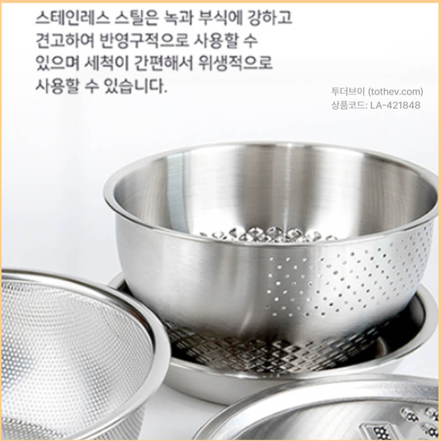 믹싱볼채반세트 LA-421848 단체 주문, 수량별 단가와 패키지 커스터마이징은 투더브이 상담 페이지에서 자세히 확인해 보세요.
