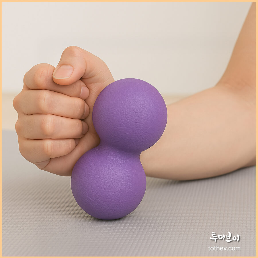 마우스 사용이 많은 사무직, 디자이너, 개발자에게는 손목 관리가 중요합니다. 땅콩마사지볼을 손으로 꽉 쥐었다 폈다 하거나 전완근 아래에 두고 굴리면 손목 주변 근막이 이완되고, 파지력 향상에도 도움이 됩니다.