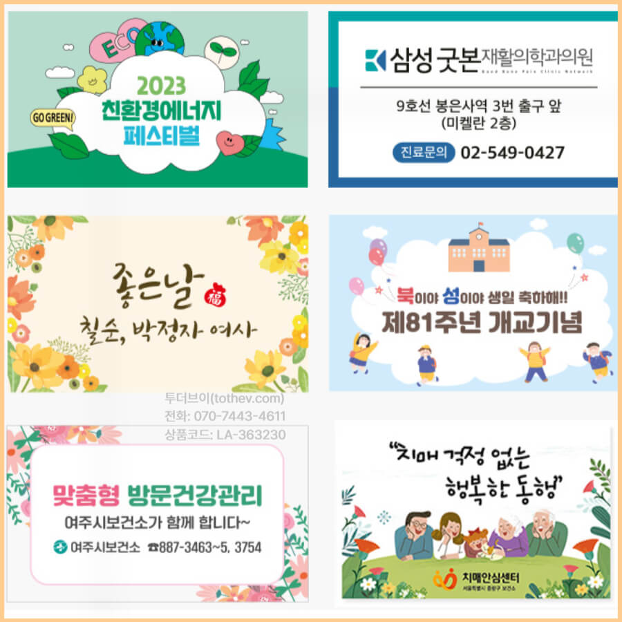 - 행사 문구 : 창립기념일, 골프대회, 학교 행사, 캠페인 문구 등
