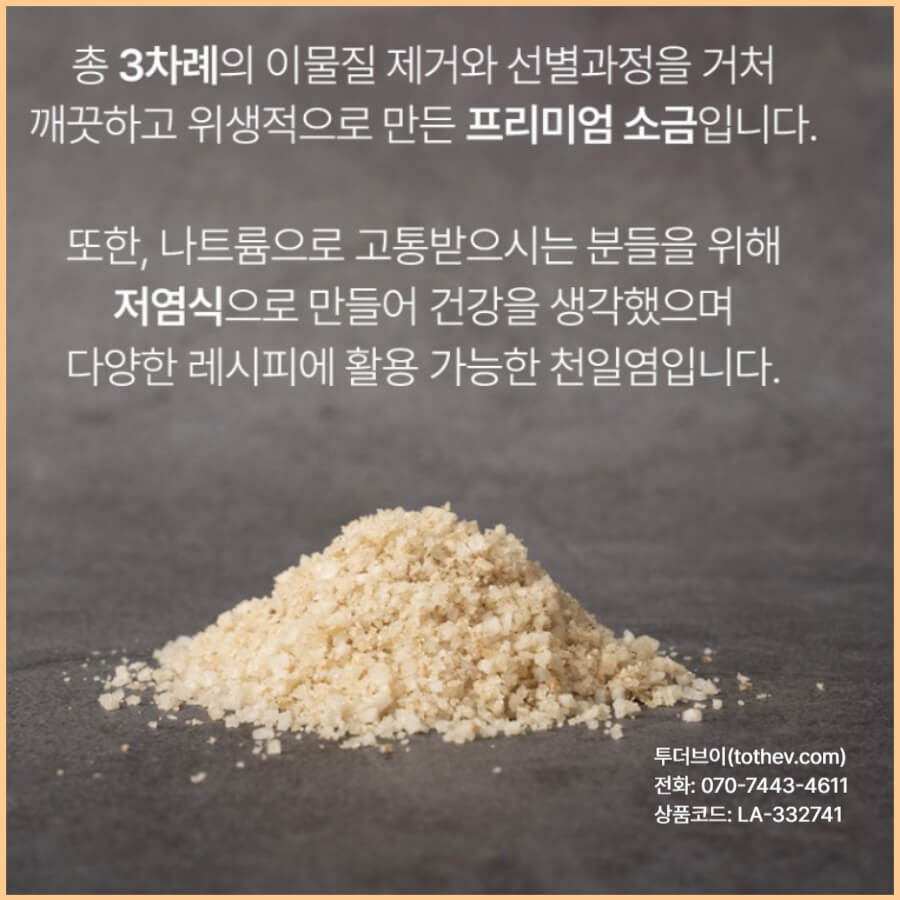 염도가 낮고 미네랄 함량이 풍부하여, 건강한 요리를 위한 최적의 선택입니다.