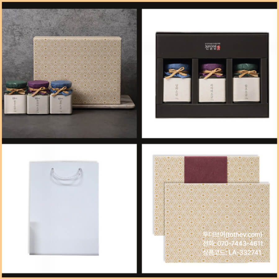 오늘 소개해드릴 상품은 상품코드 LA-332741, 프리미엄 천일염 3종 선물세트입니다.