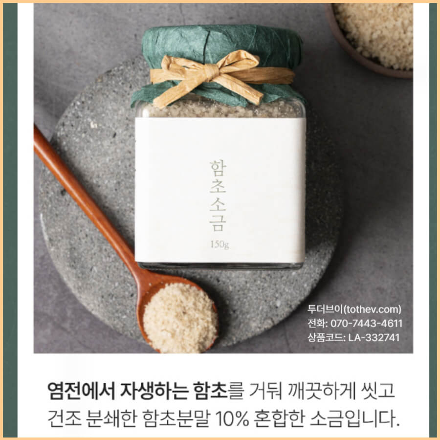 염전에서 자생하는 함초를 깨끗하게 세척, 건조, 분쇄하여 만든 함초분말 10% 혼합 소금입니다.