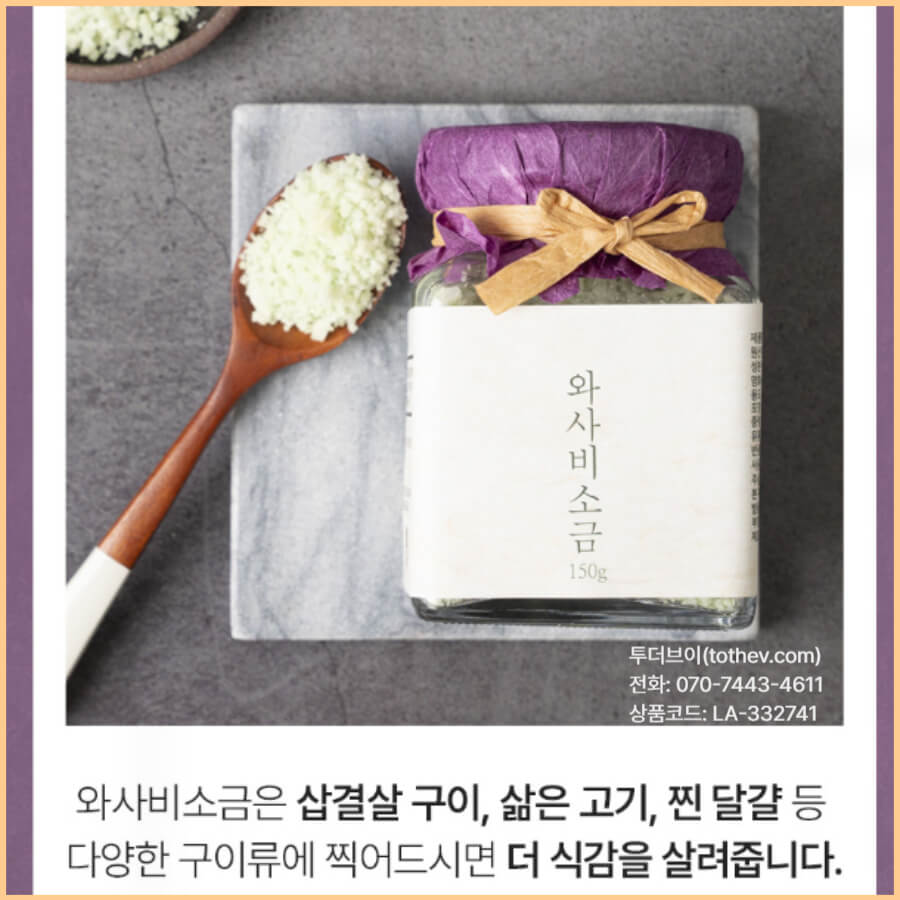 삼겹살, 스테이크, 찐 달걀 등 다양한 요리에 활용하기 좋은 와사비소금입니다.
