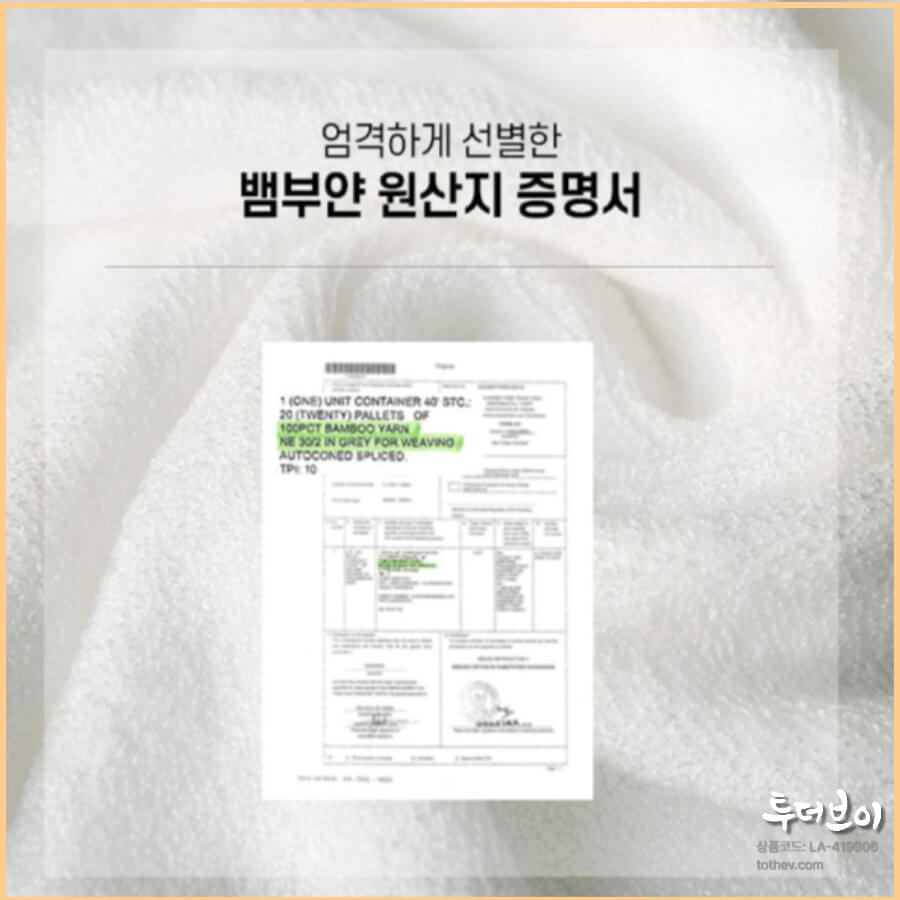 송월타올답례품에 사용되는 뱀부얀 원산지 증명서를 보여주는 신뢰도 강조 이미지