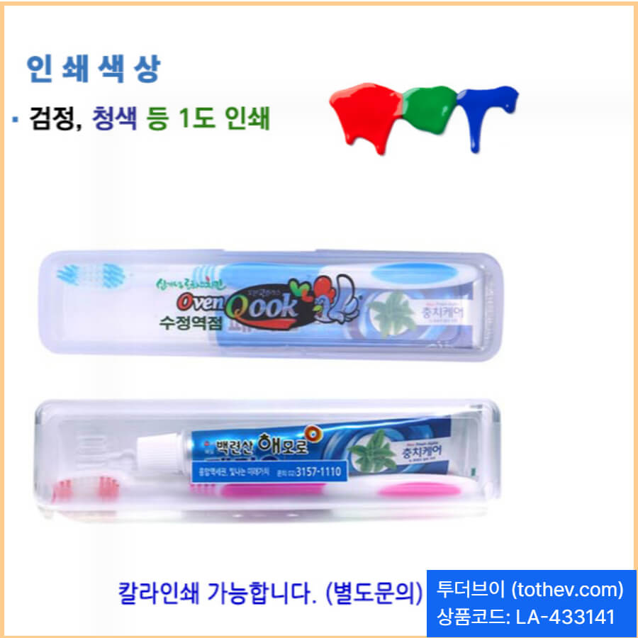 칫솔치약세트판촉물 케이스 외부에 로고를 인쇄한 칼라인쇄 판촉용 예시 이미지