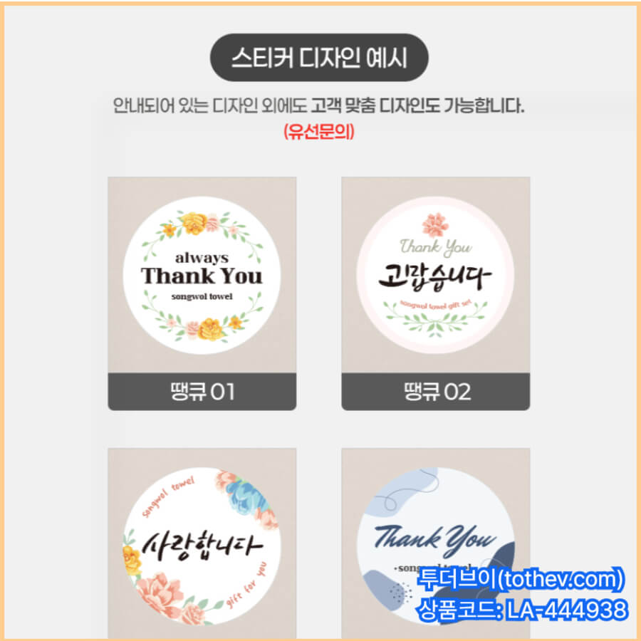 수건선물세트답례품 2P 원형 스티커 디자인 예시