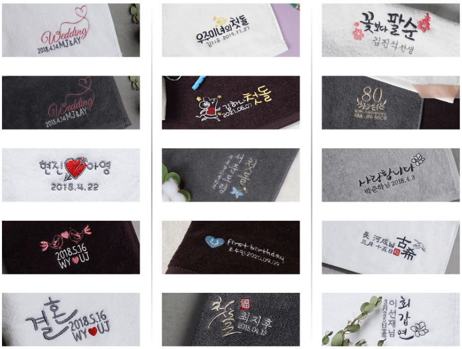 자수인쇄는 실로 문구/마크/로고를 표현해 입체감과 고급스러움이 살아납니다. 기념일(결혼/돌/칠순/기관 행사)처럼 “의미”가 중요한 답례품에서는 수건 나염 자수 차이가 체감 품질로 직결되는 편이라 자수 선호가 높습니다.