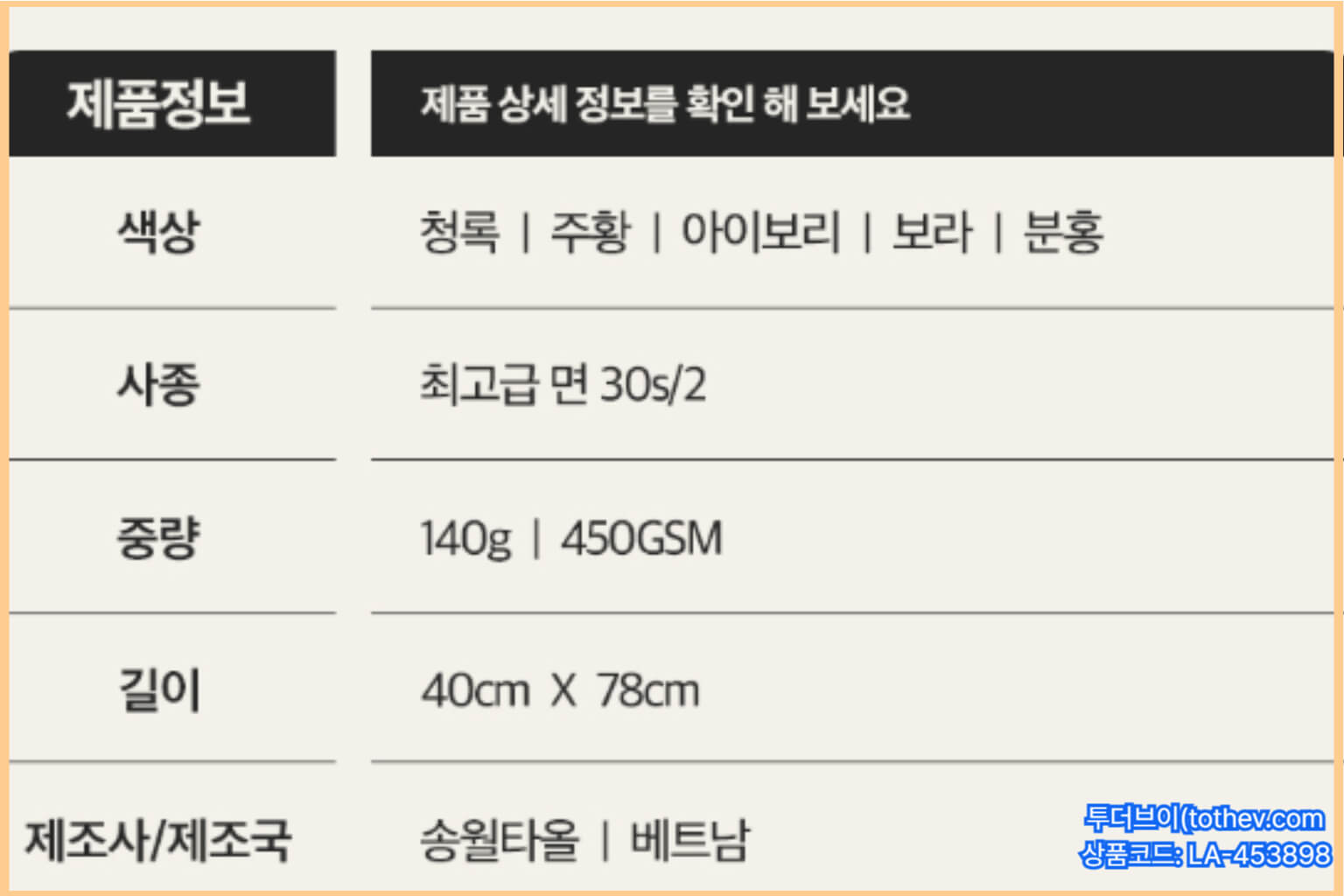 데일리 수건 추천 1순위로 보는 핵심 스펙: 140g인데 450GSM