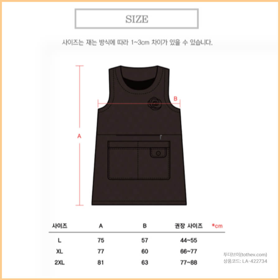 겨울용 앞치마 특성상 약간 크게 제작되었으며, ±1~3cm 차이가 발생할 수 있습니다.