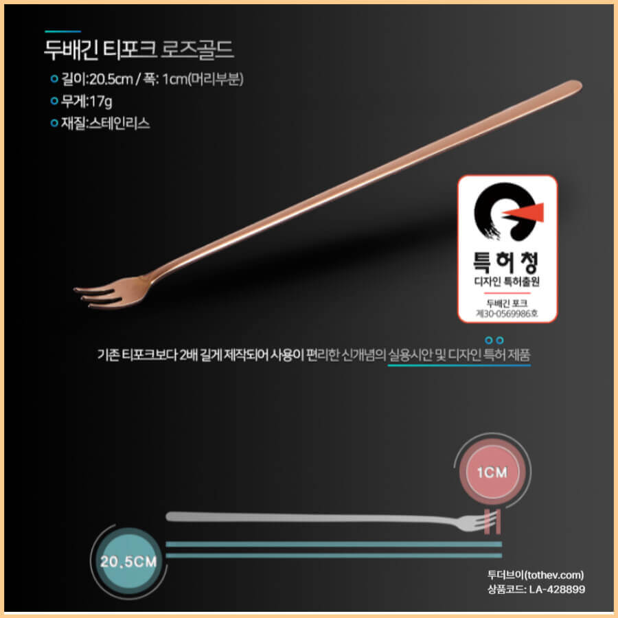 티포크사이즈: 길이 20.5cm, 폭 1cm(머리부분) - 무게: 티스푼 19g / 티포크 17g
