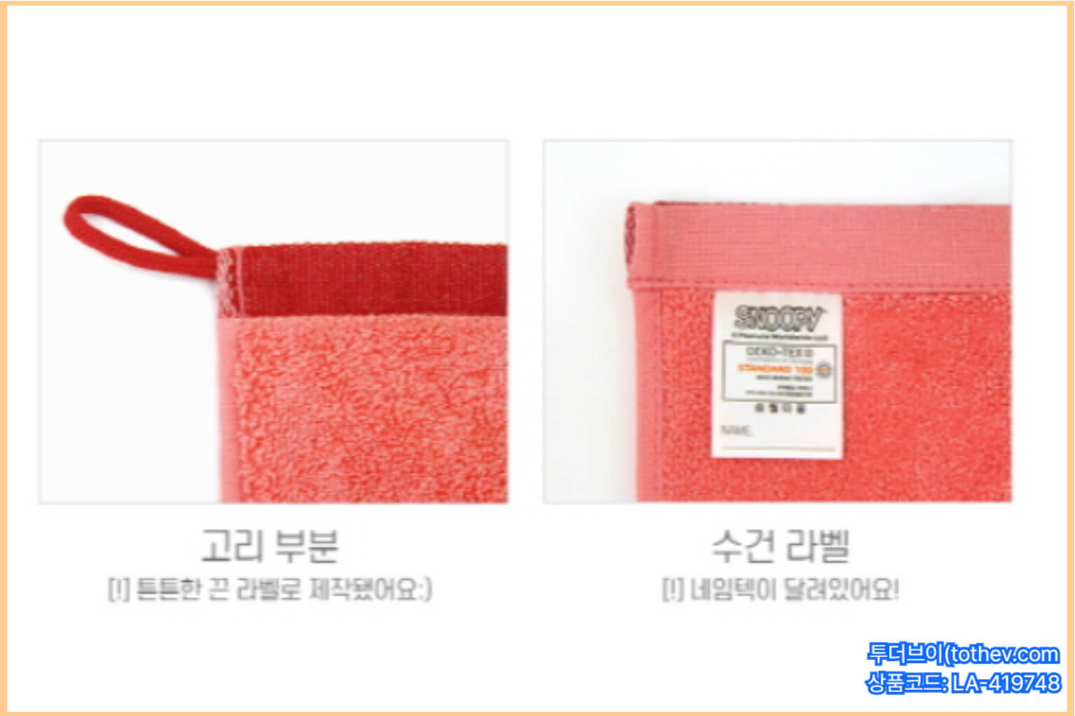 현장에서 가장 많이 발생하는 이슈가 “걸이 부분 늘어짐”과 “라벨/마감 들뜸”입니다. 고리타올 단체제작 시에는 고리 재질, 박음 상태, 라벨 부착 방식까지 확인해야 클레임 가능성이 낮아집니다.